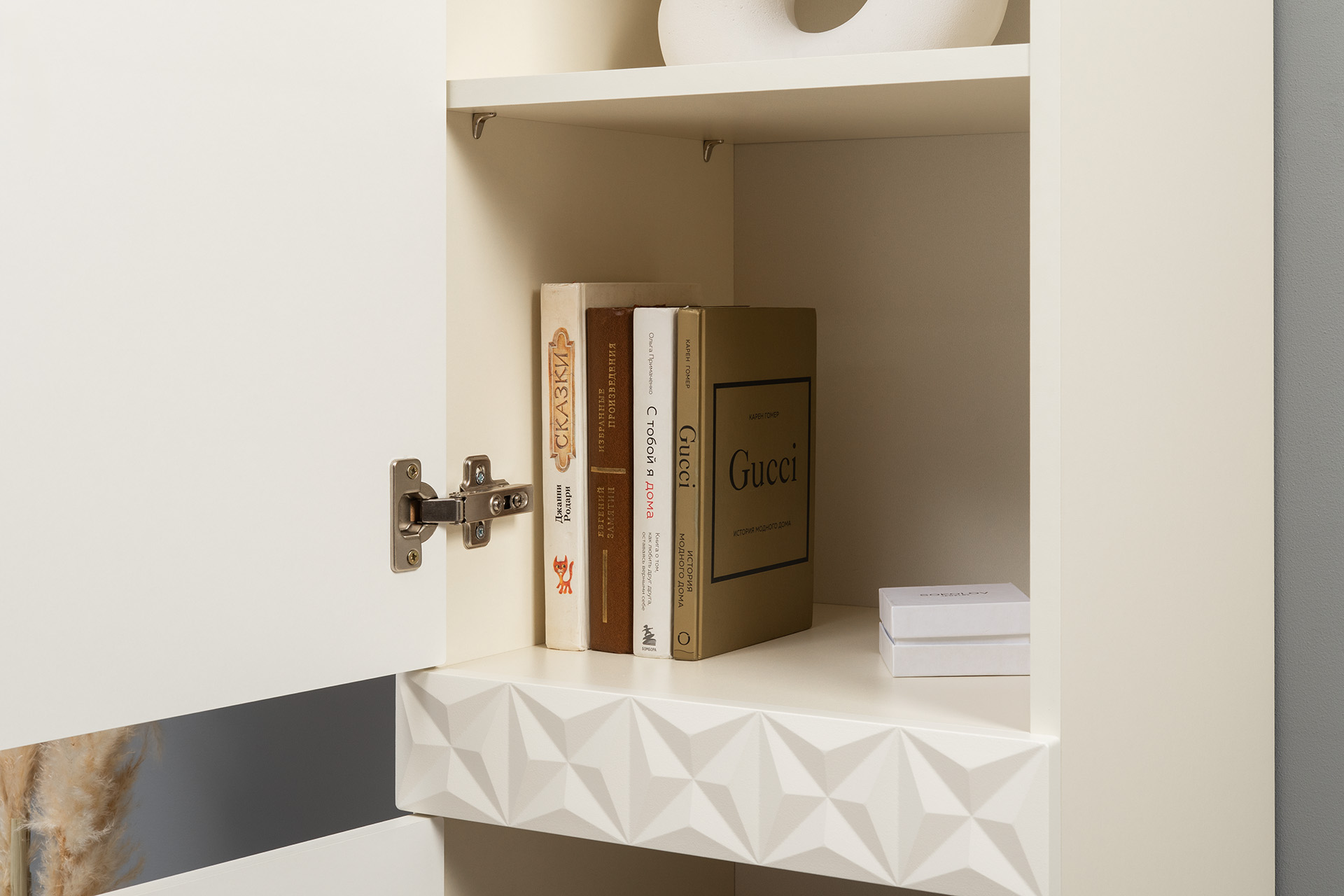 Гостиная Марион композиция 2 слоновая кость С341 PE, слоновая кость 6898 ПВХ, белый PE шагрень (собирается на любую сторону)