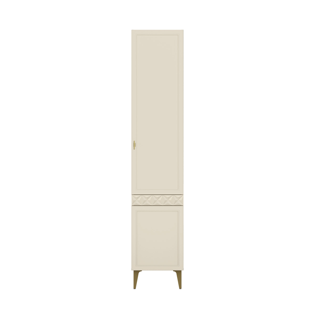 Изящные линии, глубокая фрезеровка фасадов из МДФ и благородные оттенки. Утончённая «Слоновая кость» и изысканная «Олива Шагрень» с глубоким зелёным тоном — создают атмосферу уюта, тепла и благородства. Металлические ручки и опоры золотого цвета придают мебели утончённый блеск, а петли и направляющие с доводчиками обеспечивают плавное и бесшумное закрытие фасадов.