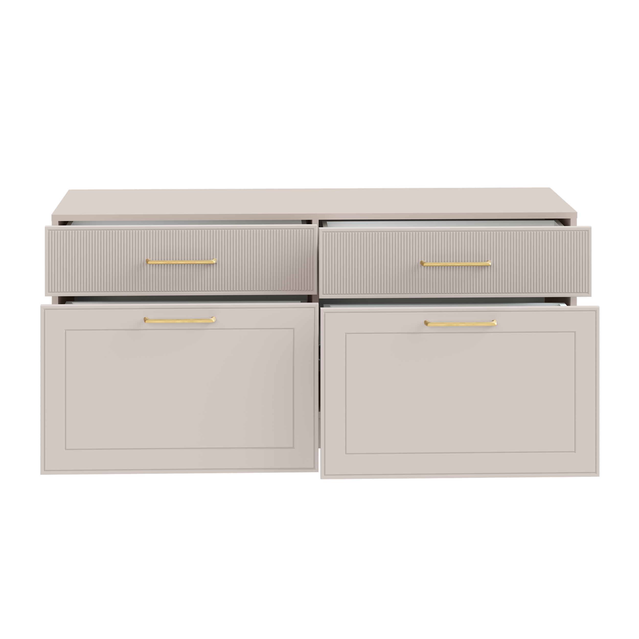 Гостиная Ричфорд композиция 2 без карнизов, кашемир 5981 BS, моно керамика D166-2 ПВХ, белый PE шагрень (собирается на любую сторону)
