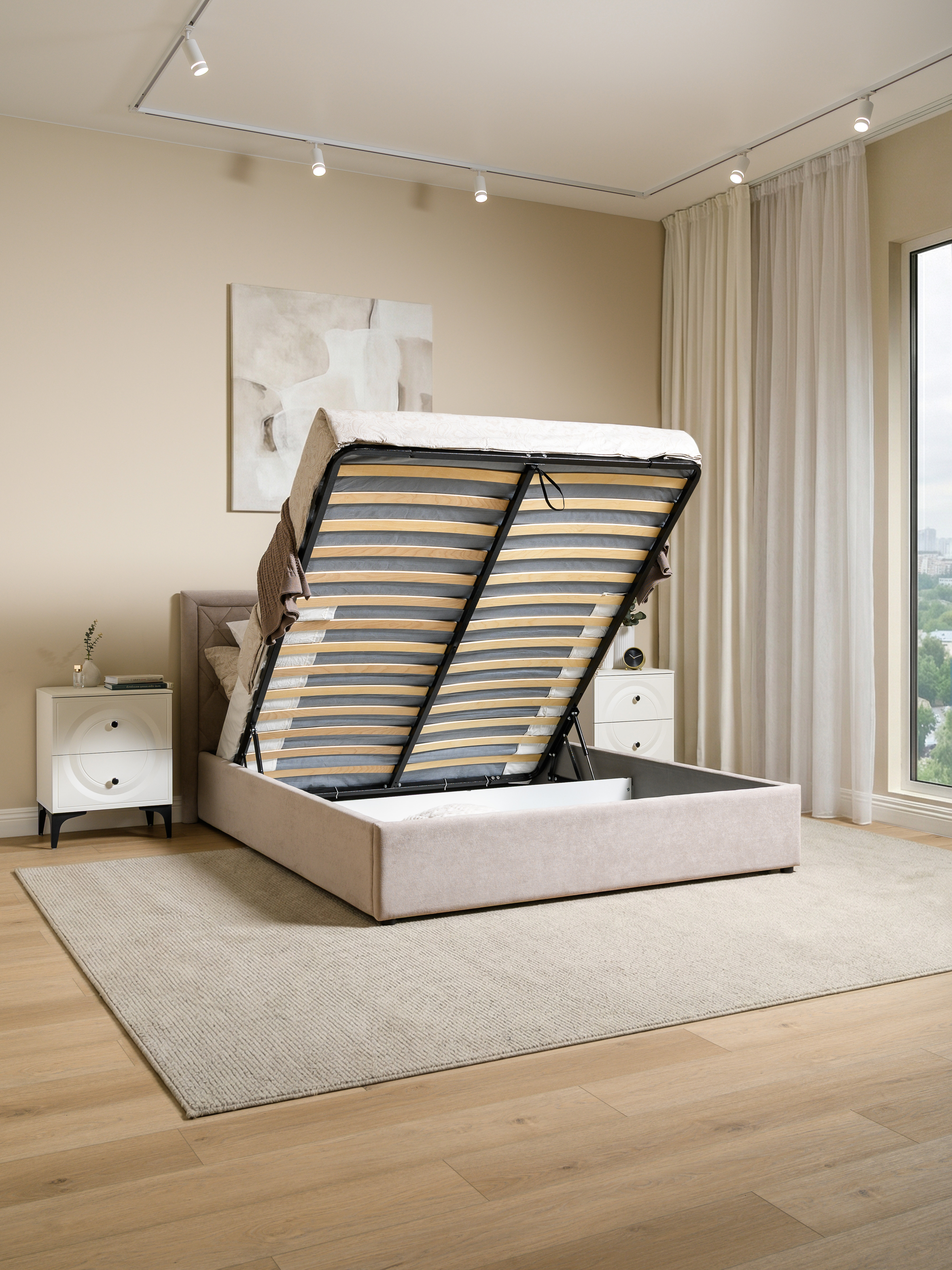 Кровать Марион 160 велюр OCEAN 005 темно-бежевый с ортопедическим основанием и подъемным механизмом (спальное место 160 х 200)