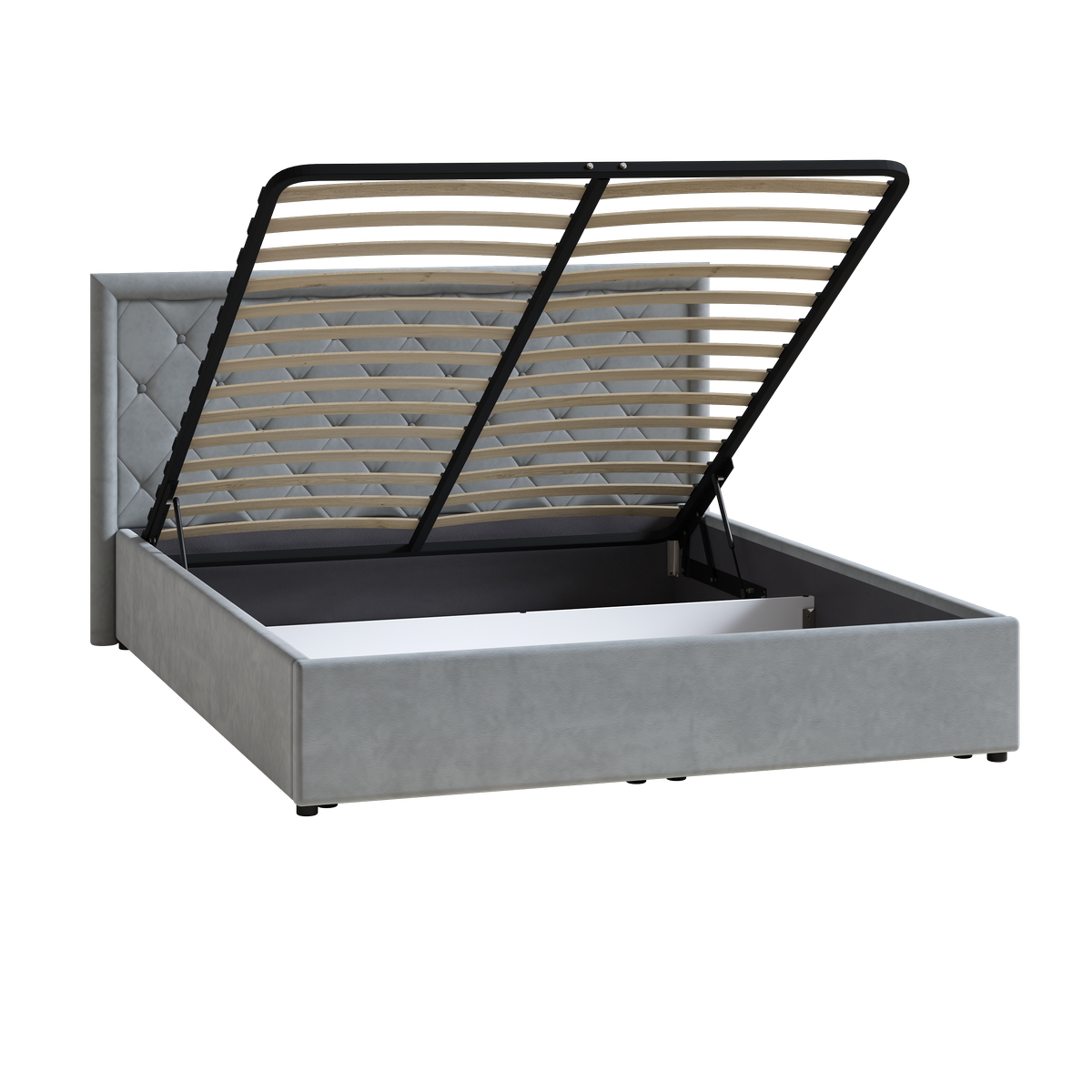 Кровать Марион 160 велюр OCEAN 023 серый с ортопедическим основанием и подъемным механизмом (спальное место 160 х 200)