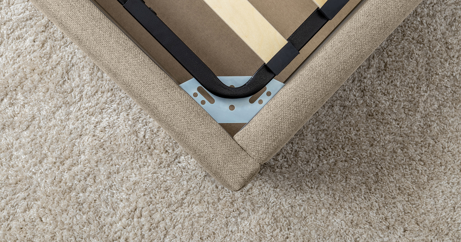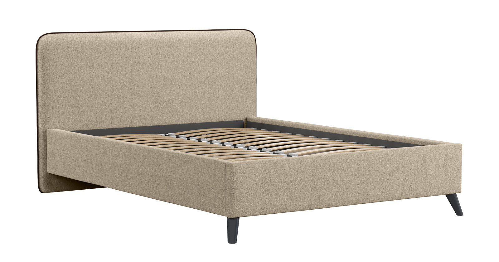 Кровать Миа 180 светло-бежевый, кант желтовато-коричневый с ортопедическим основанием и подъемным механизмом