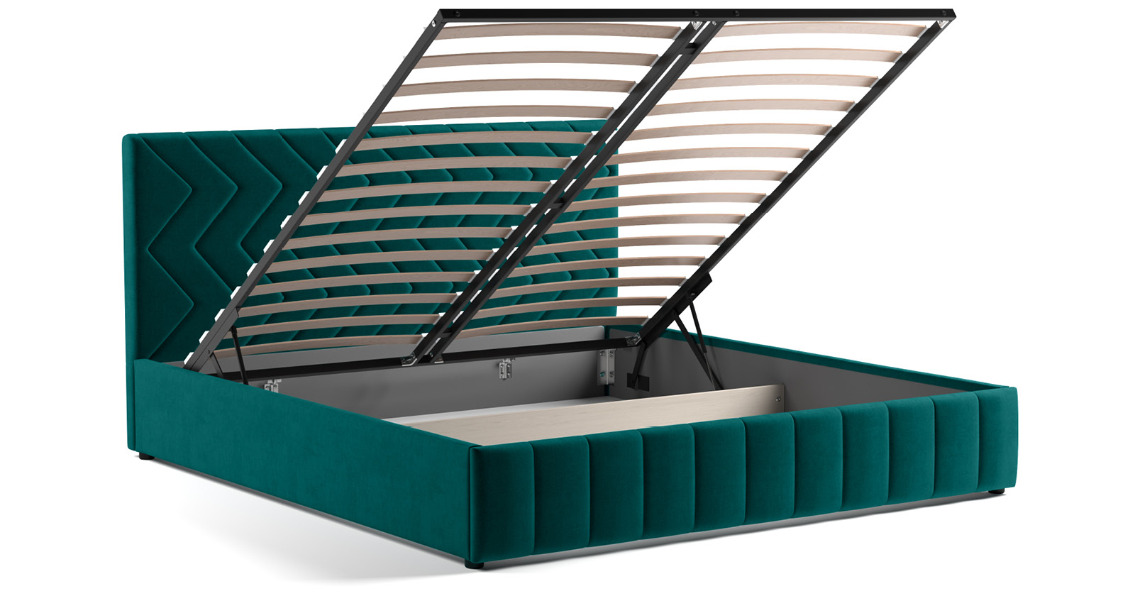 Кровать Милана 180 велюр сине-зеленый с ортопедическим основанием и подъемным механизмом
