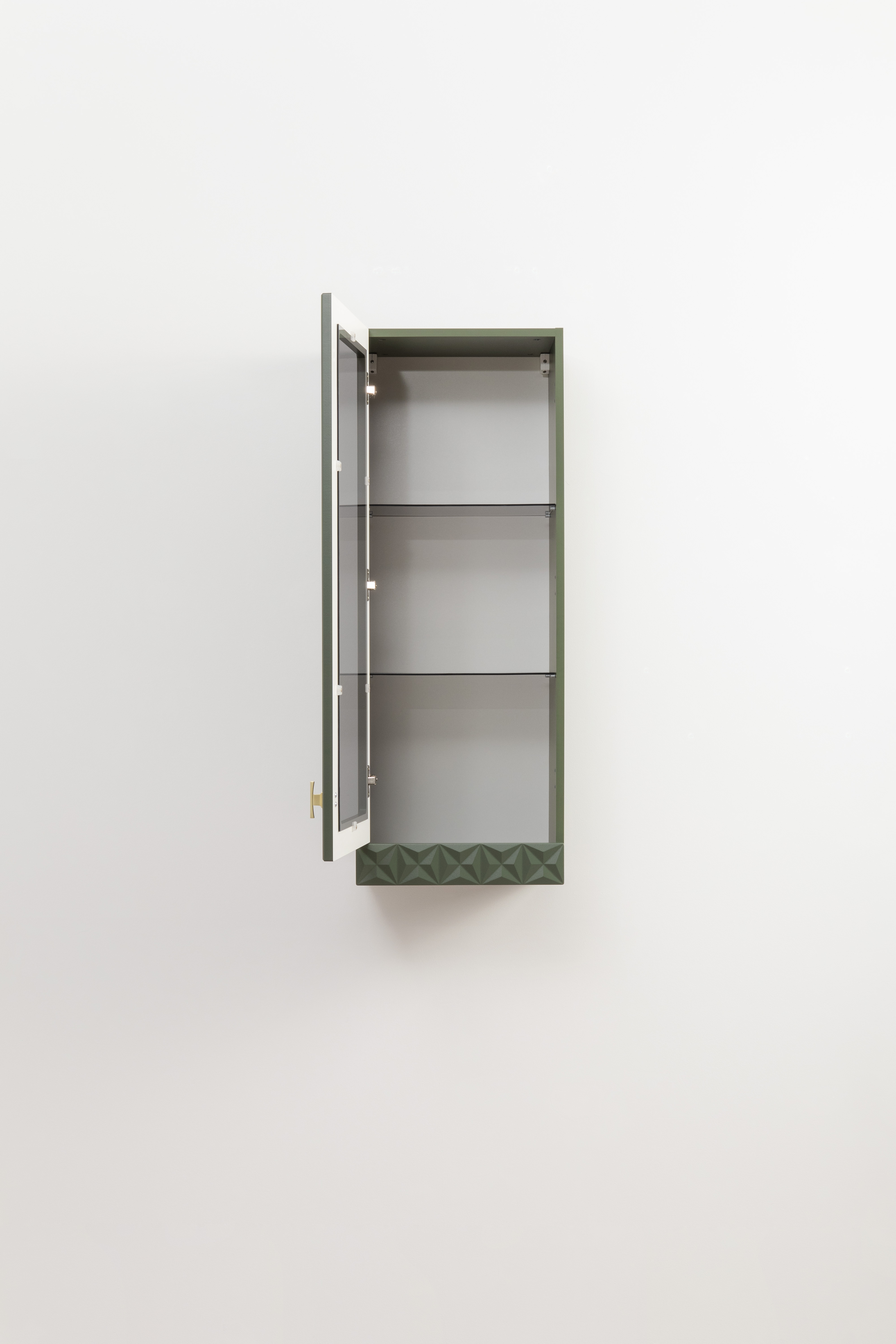 Шкаф навесной Марион 16.334 дымчатый зеленый K521, олива шагрень AG 1050 ПВХ (собирается на любую сторону)