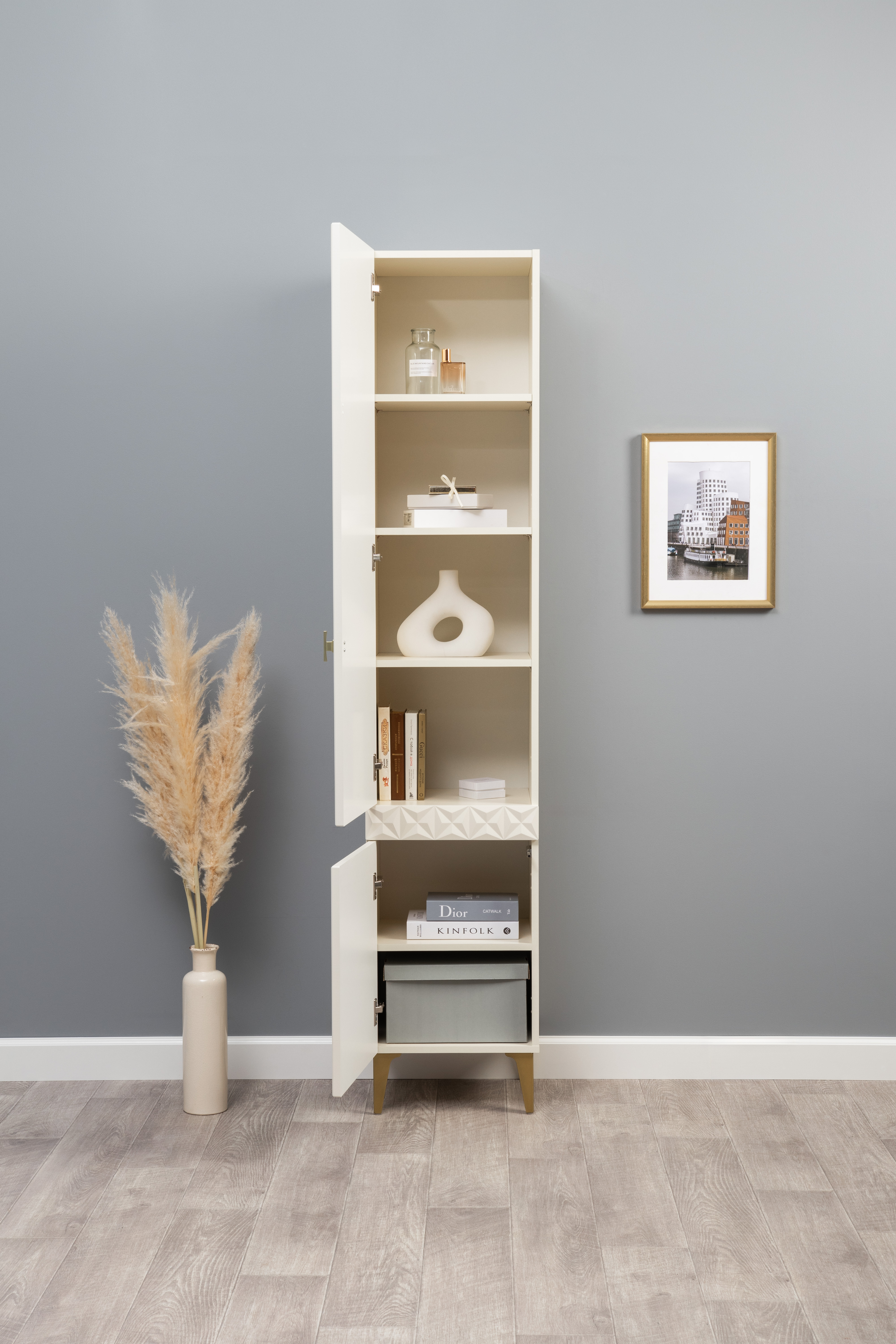 Шкаф-пенал Марион 16.333.01 слоновая кость С341 PE, слоновая кость 6898 ПВХ (собирается на любую сторону)