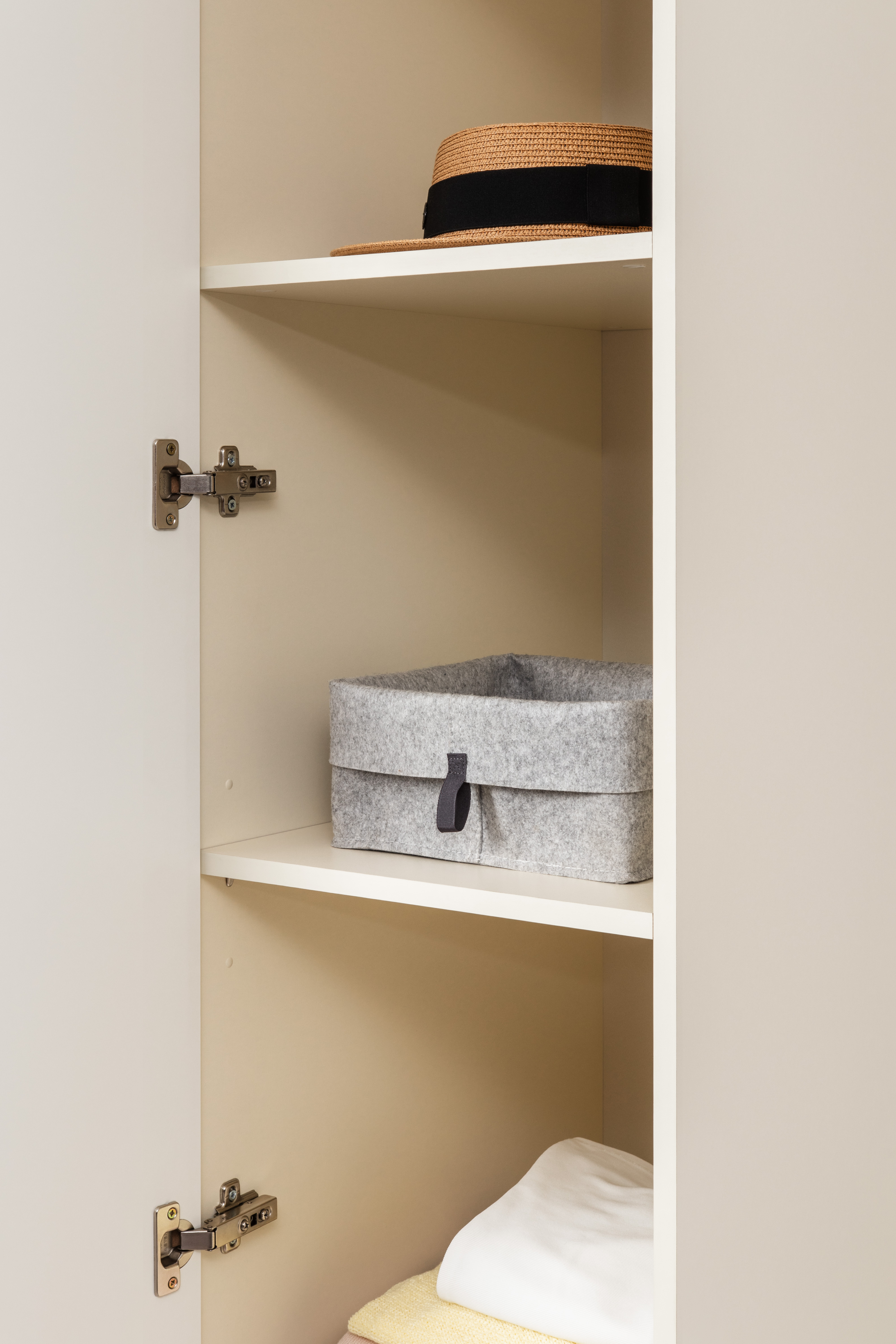 Изящные линии, глубокая фрезеровка фасадов из МДФ и благородные оттенки. Утончённая «Слоновая кость» и изысканная «Олива Шагрень» с глубоким зелёным тоном — создают атмосферу уюта, тепла и благородства. Металлические ручки и опоры золотого цвета придают мебели утончённый блеск, а петли и направляющие с доводчиками обеспечивают плавное и бесшумное закрытие фасадов.