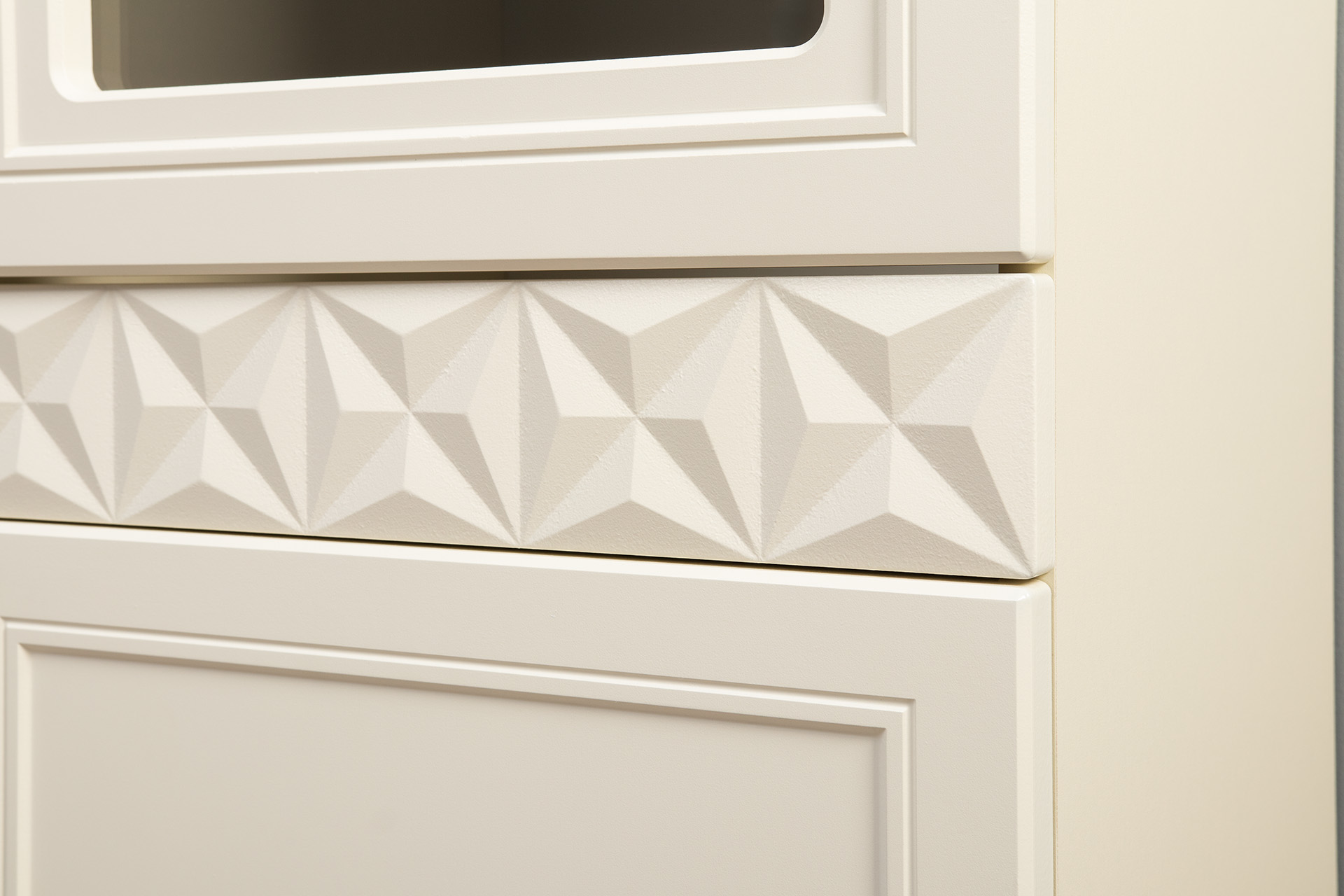 В коллекции представлены три типа витрин с тонированным закалённым стеклом, которые придают пространству лёгкость и свет. «Марион» — идеальное сочетание традиций и актуального дизайна в каждой детали.