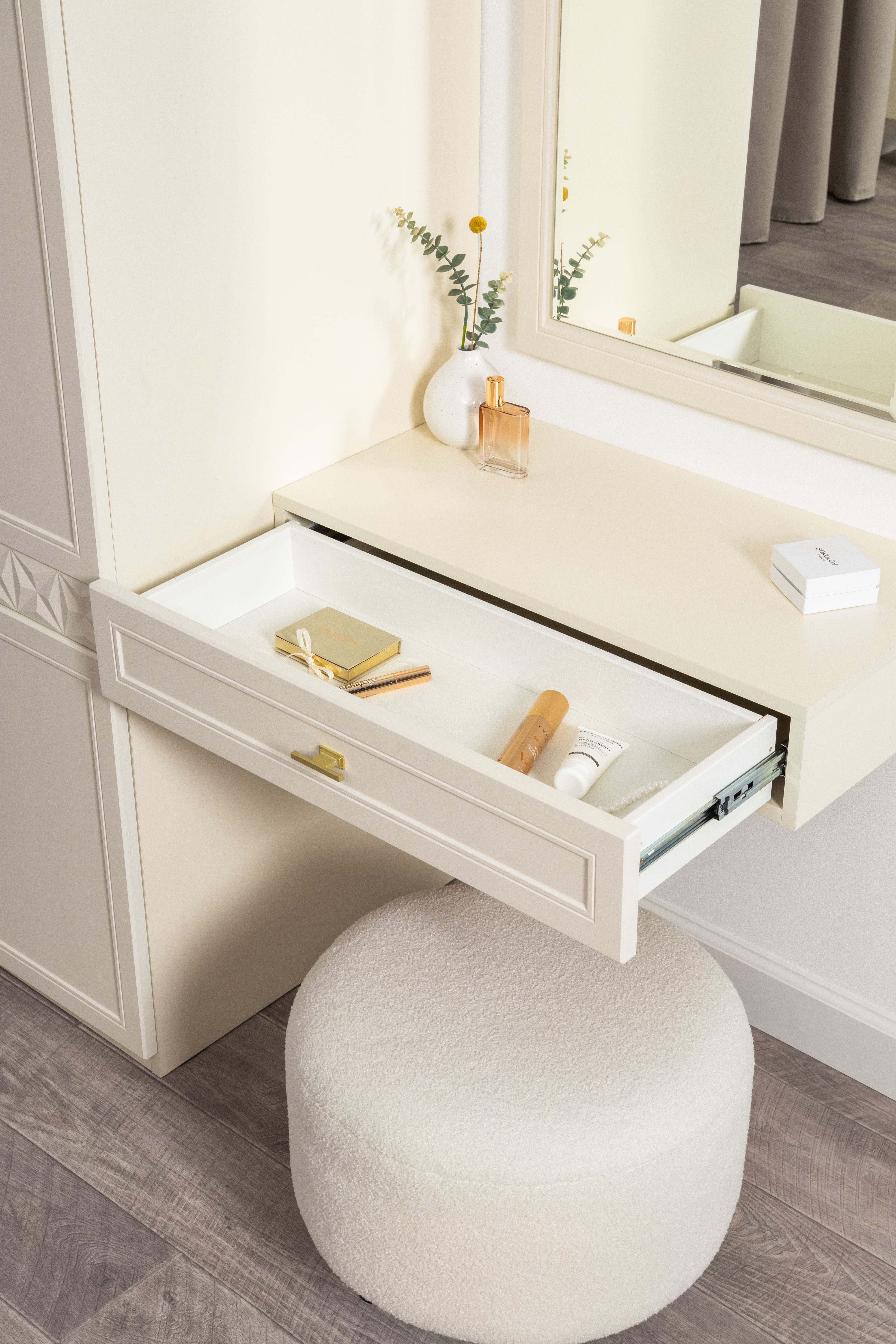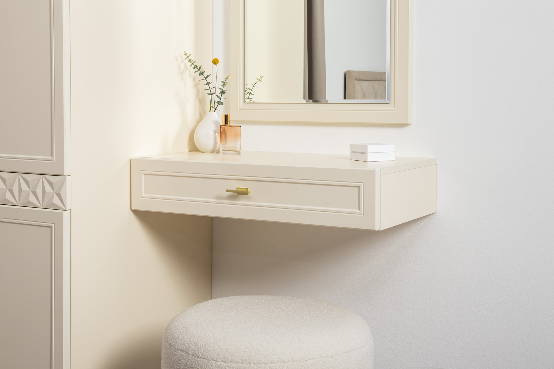 Тумба прикроватная Марион 16.14 слоновая кость С341 PE, слоновая кость 6898 ПВХ, белый PE шагрень